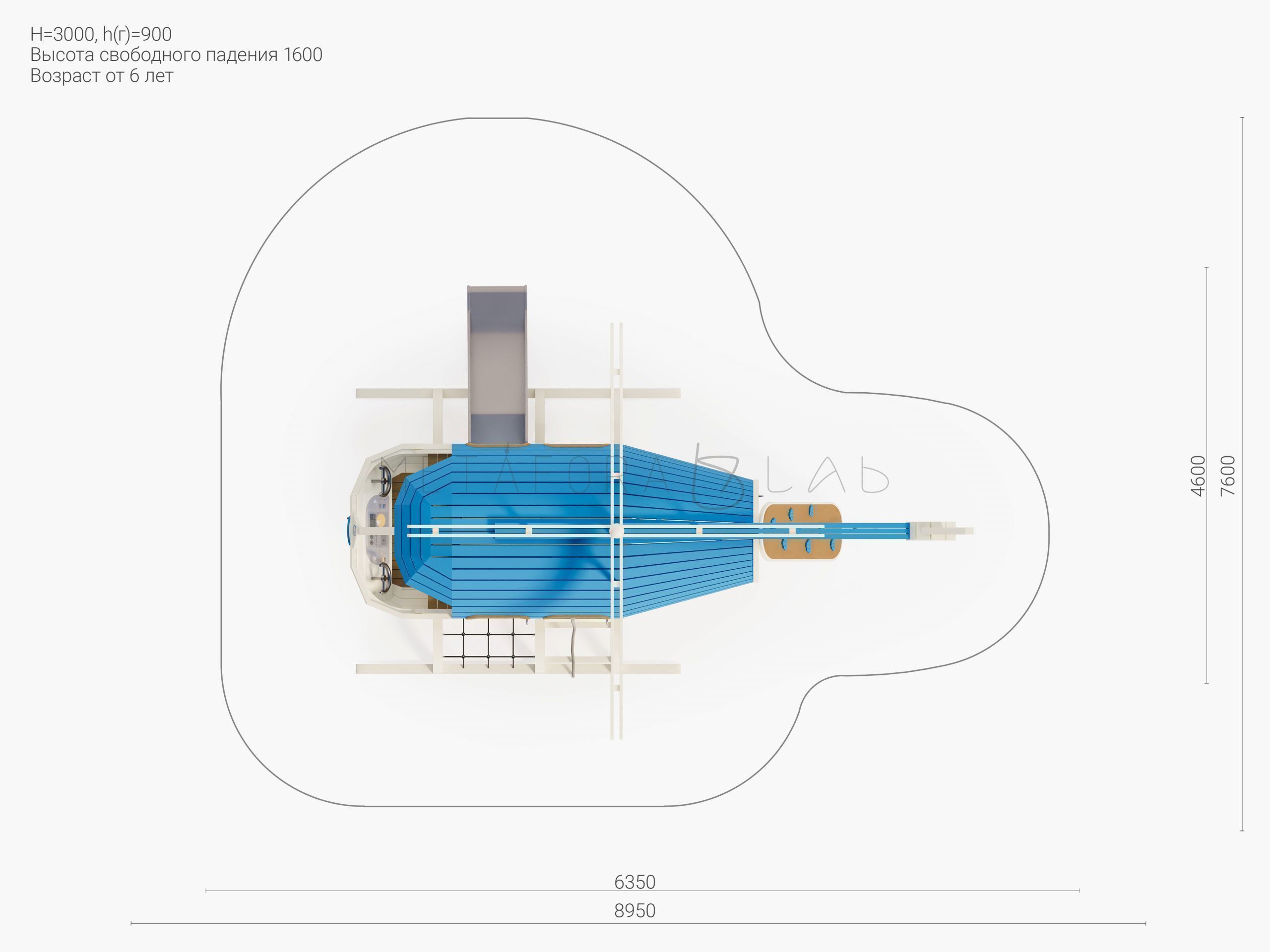 6350 мм. x 4600 мм. x 3000 мм.